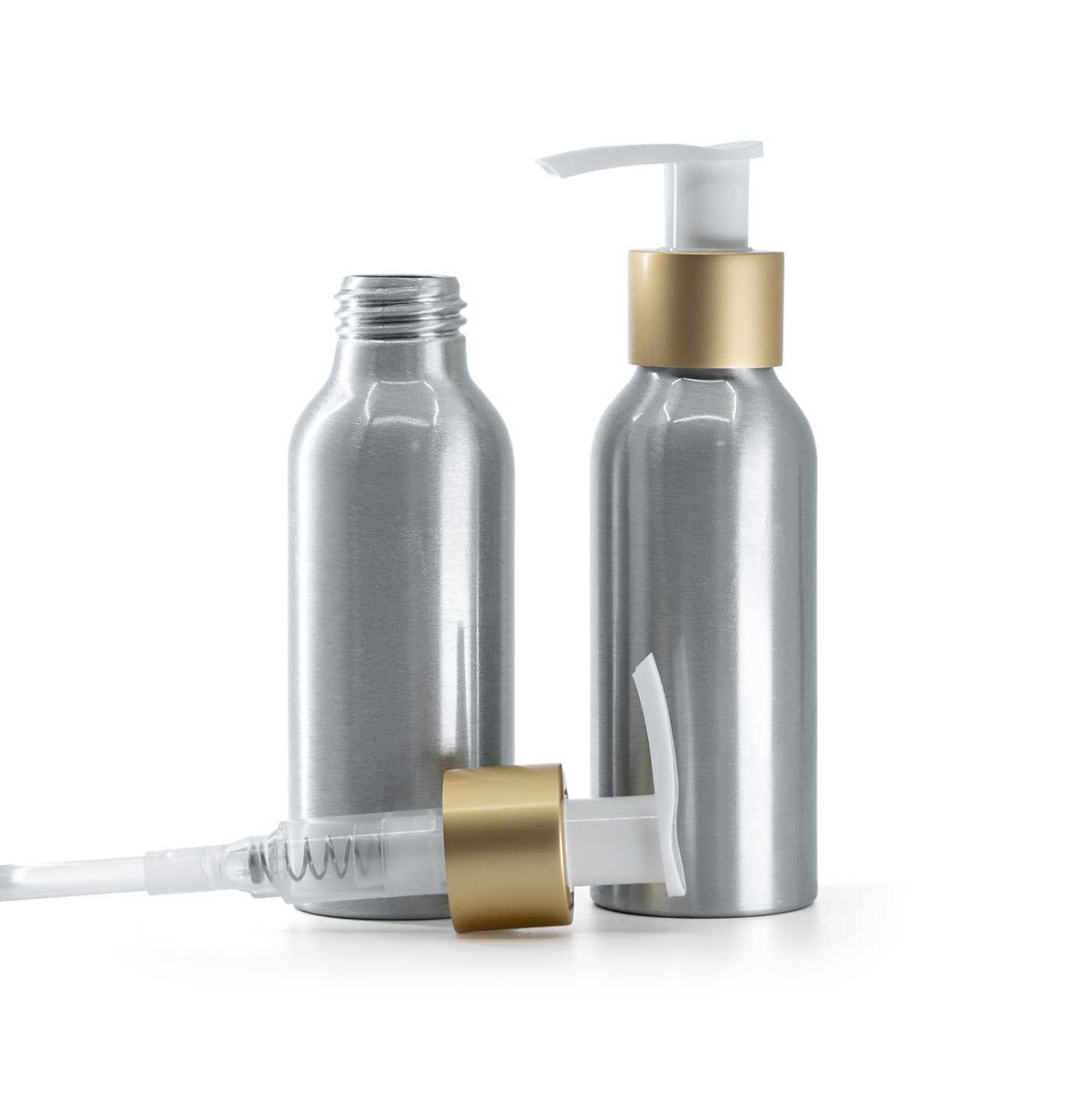 The aluminum bottle with a white-and-gold matte dispenser represents an elegant and professional packaging solution for a wide range of liquid cosmetic preparations. Thanks to its stable metal body and high‑quality dispensing mechanism, it is suitable for precise, hygienic and comfortable dispensing of products with different viscosities. The sturdy construction of the packaging helps protect the contents from external influences and minimizes contact with air during use, which supports a longer shelf life of formulations.