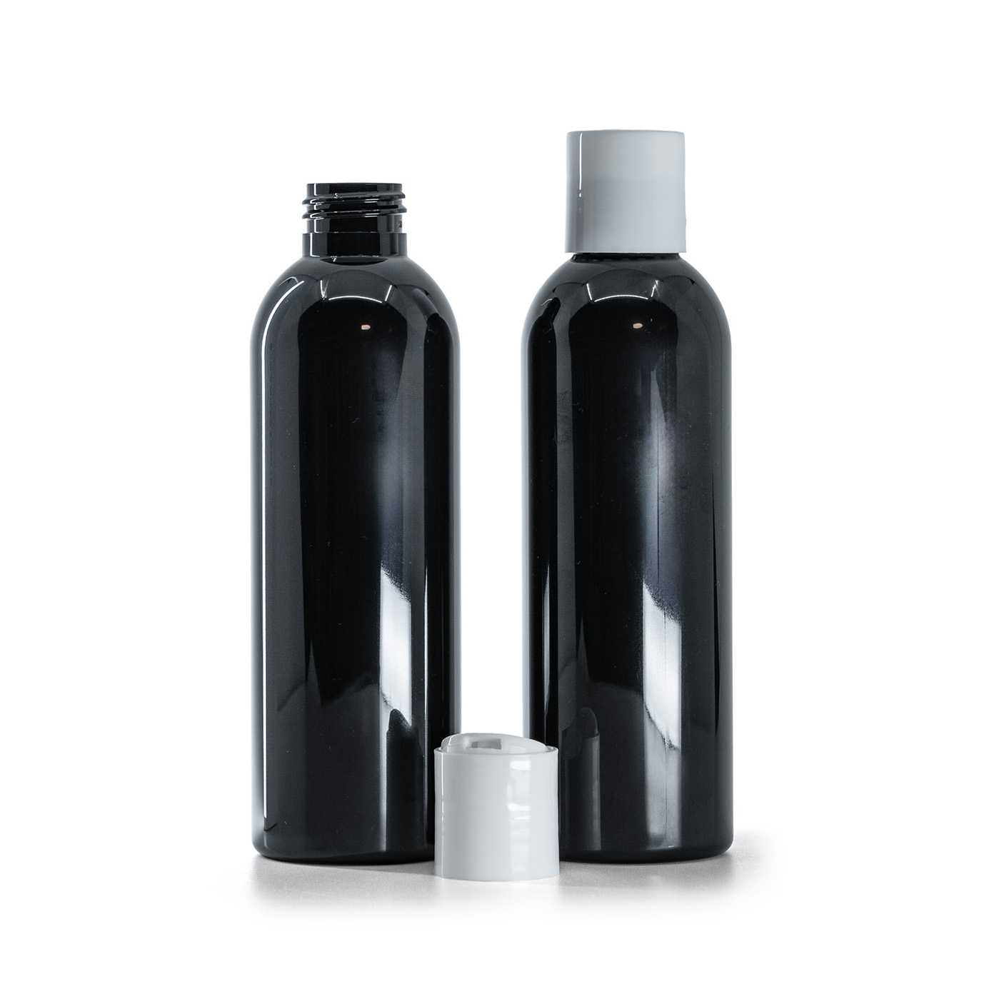 Black Shiny Plastic Bottle, White Disc Top, 200 ml