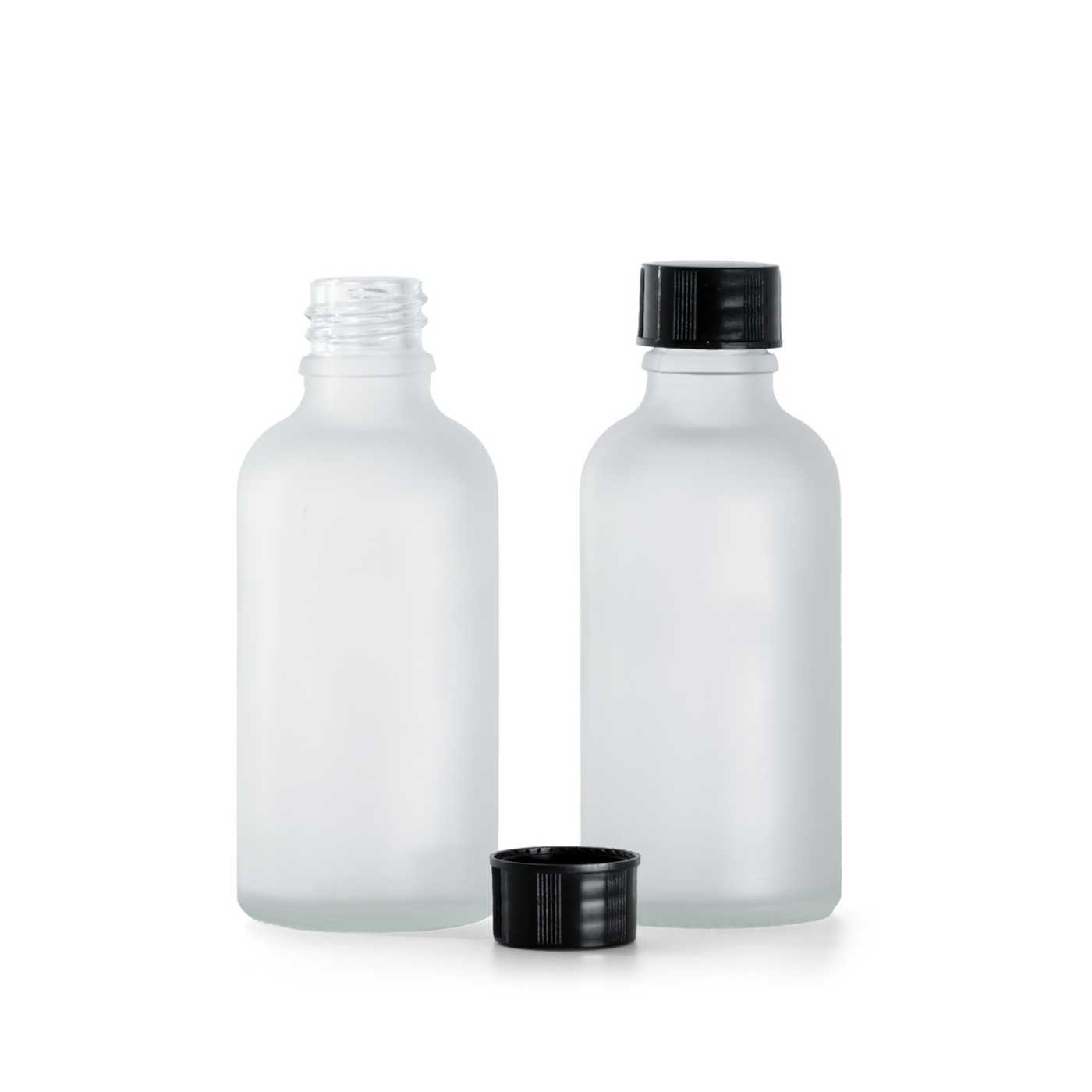 Clear Frosted Glass Bottle, Black Cap, 50 ml