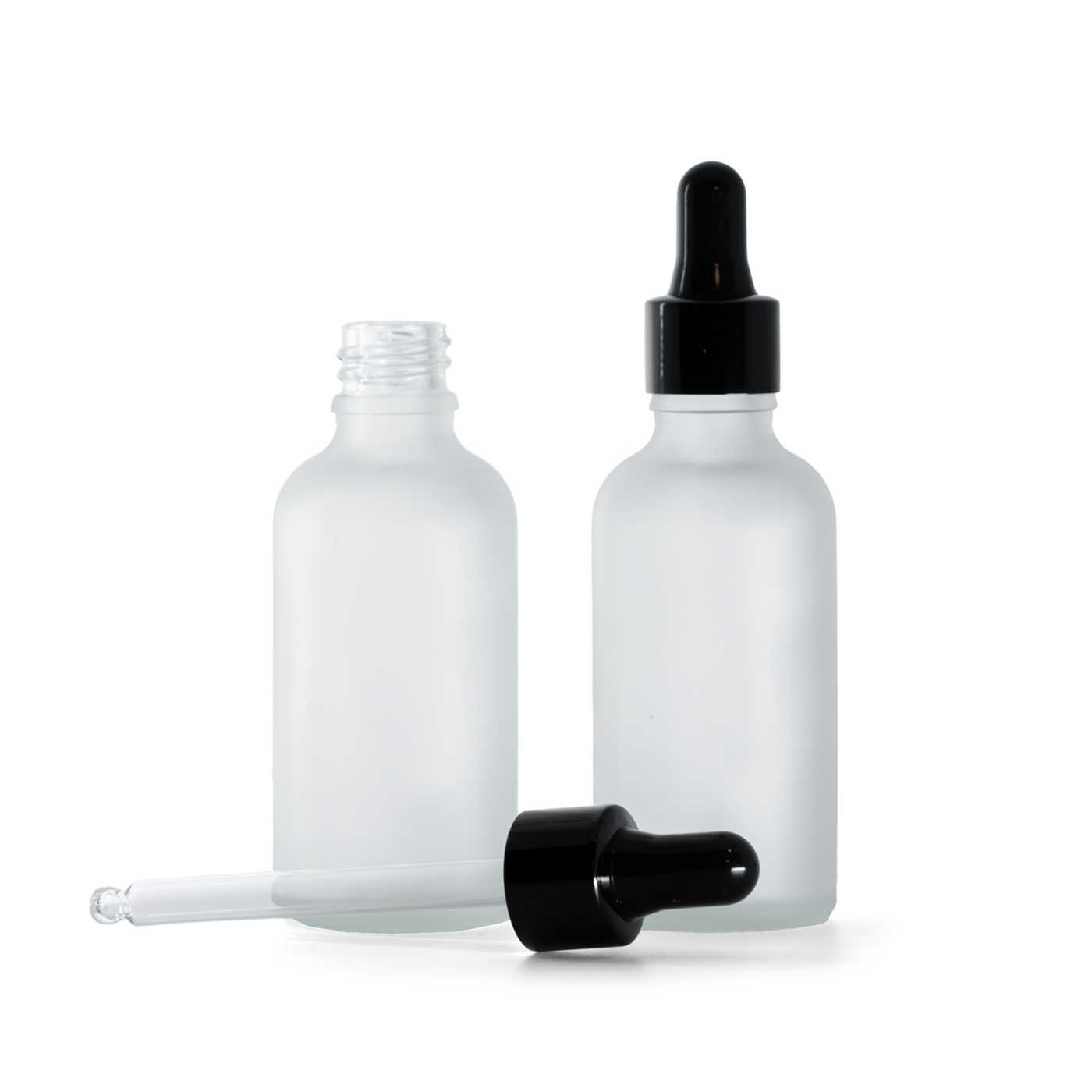 Clear Frosted Glass Bottle, Glossy Black Dropper, 50 ml