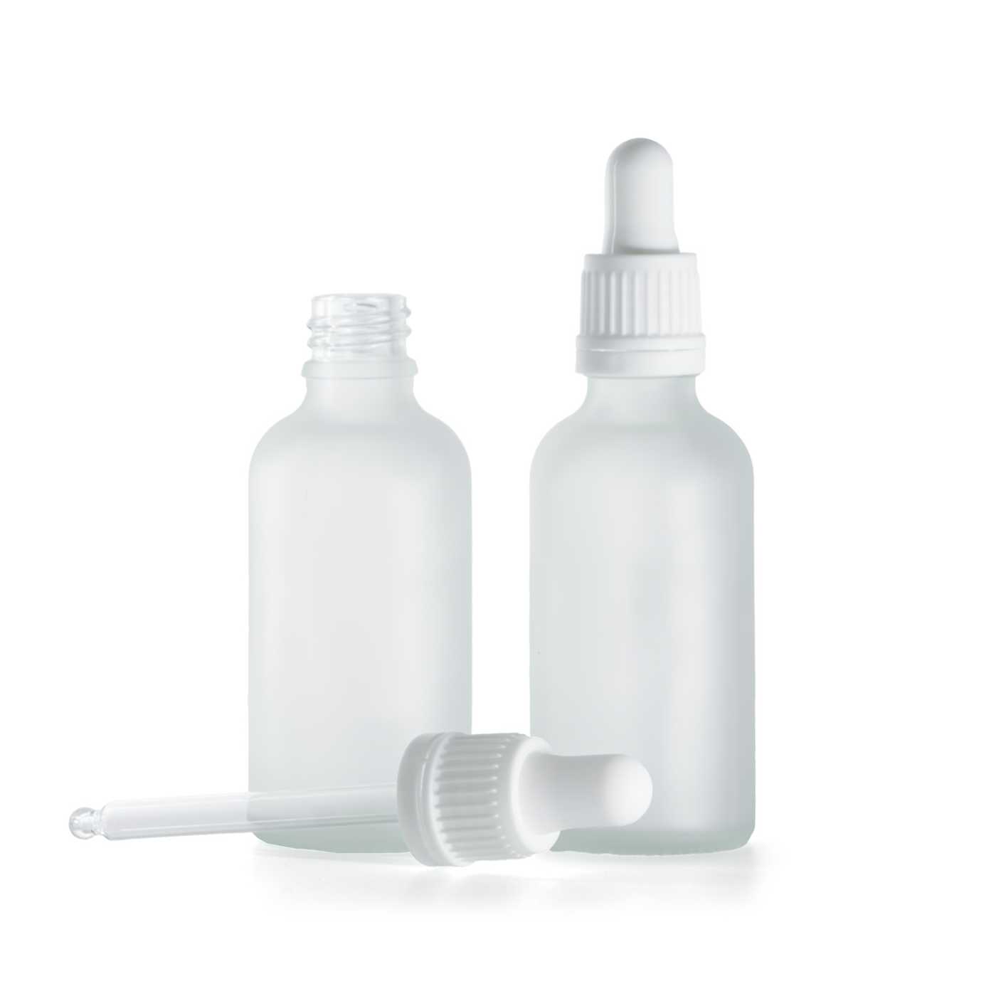 The glass bottle is made of thick transparent glass, which is ground on the outside. Volume: 50 ml, total volume 55 mlBottle height: 78.8 mmBottle diameter: 33 mmBottle neck: 18/410