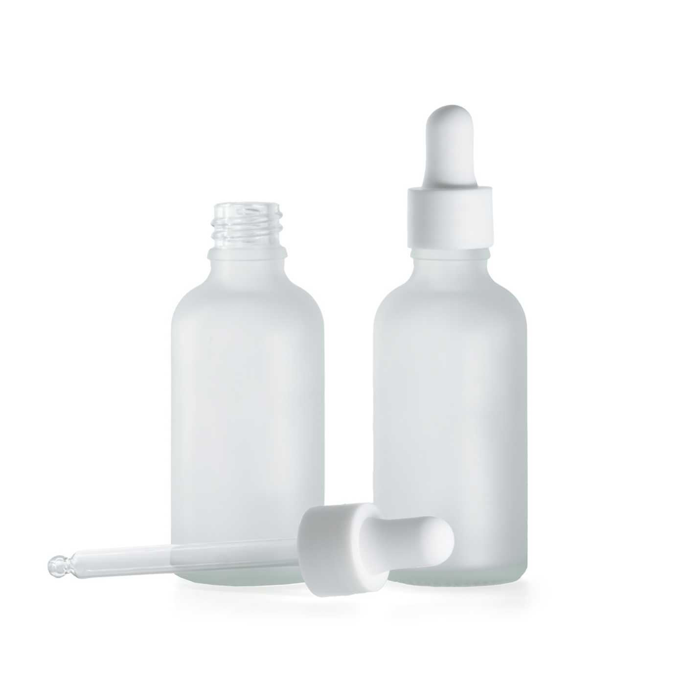 Clear Frosted Glass Bottle, White Smooth Matte Dropper, 50 ml