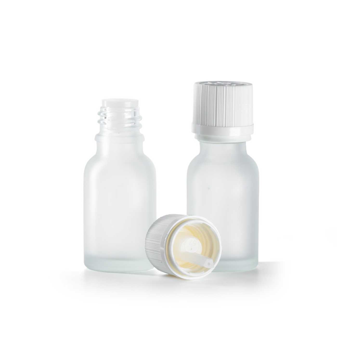 Clear Frosted Glass Bottle, White Tamper Evident Safety Cap & Dropper, 15 ml