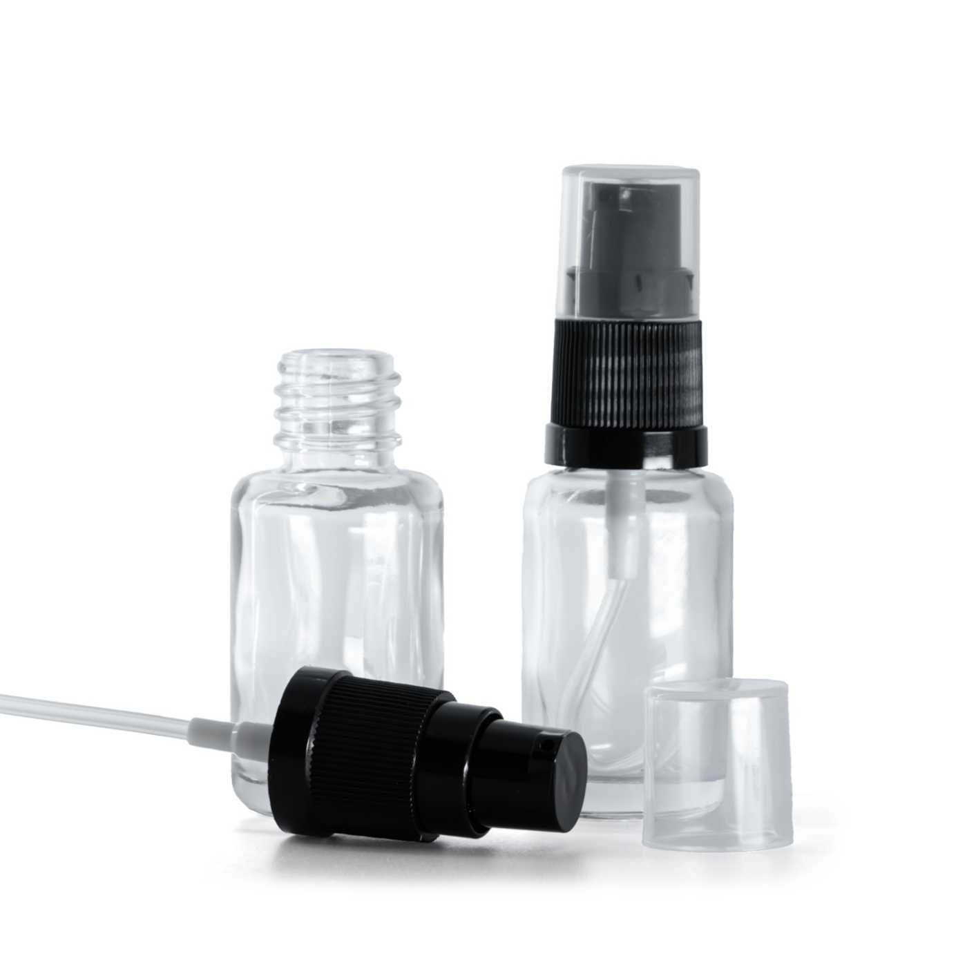 The glass bottle is made of thick transparent glass with a thick bottom. Volume: 12 ml, total volume 17 mlBottle height: 61.6 mmBottle diameter: 29 mmNeck: 18/415