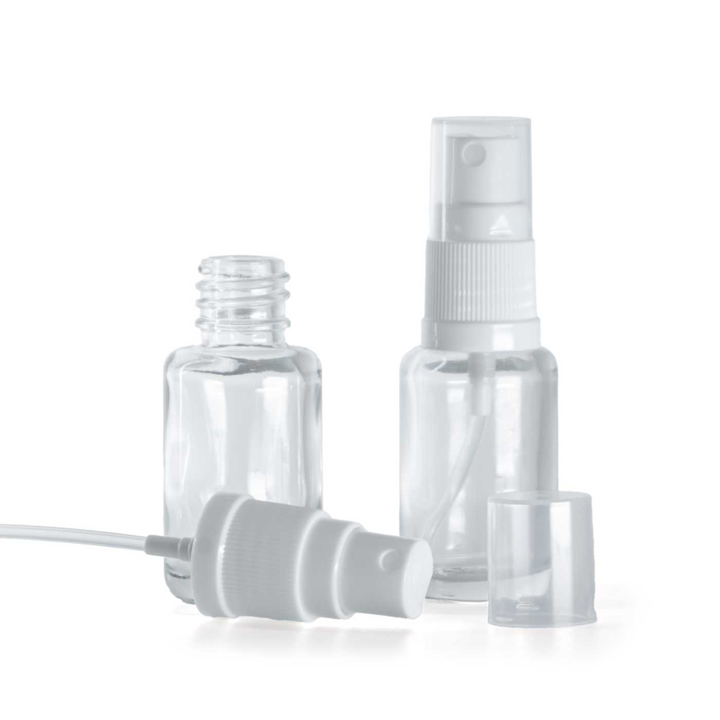 Clear Glass Bottle, Round, White Spray, 12 ml