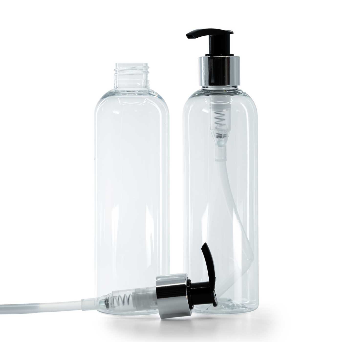 Transparent plastic bottle, ideal for storing a variety of liquids, oils, lotions, etc. It is semi-rigid, but can be squeezed.