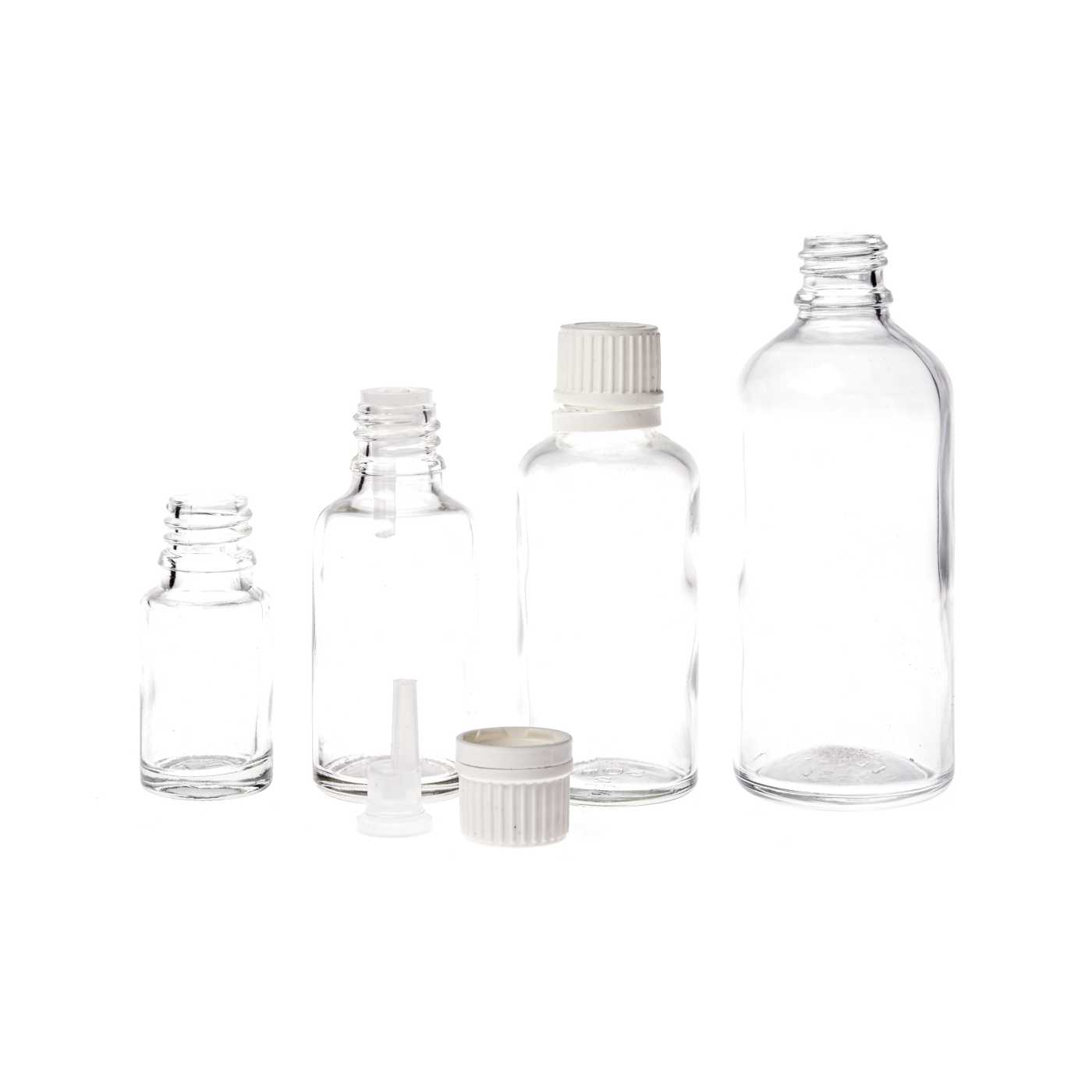 The glass bottle, the so-called vial, is made of thick transparent glass. It is used for storing liquids. Volume: 15 ml, total volume 18 mlBottle height: 64 mmBottle diameter: 28.5 mmBottle neck: 18/410