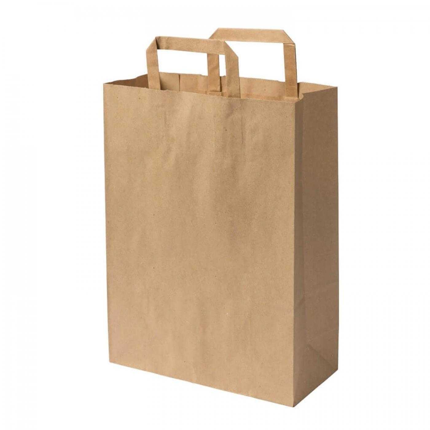 Paper bags with flat handles are an inexpensive solution for eco-friendly packaging.