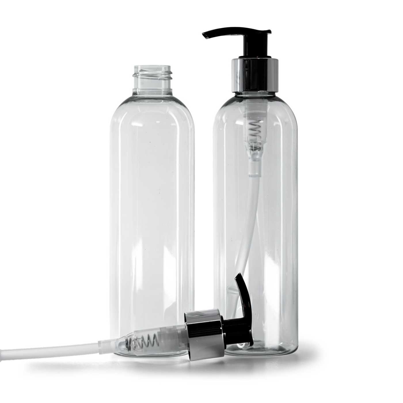 Transparent plastic bottle, ideal for storing a variety of liquids, oils, lotions, etc. It is semi-rigid, but can be squeezed. Made of recycled plastic.Volume: 250 mlBottle material: PETLid material: PPDiameter of top: 24/410