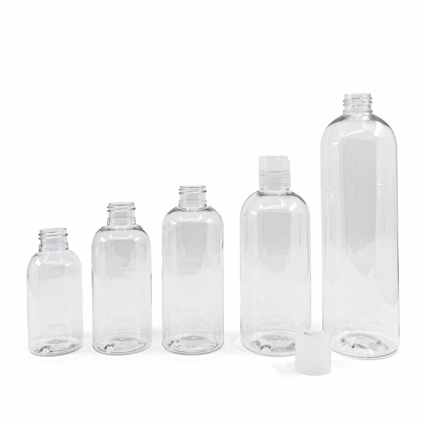 Transparent plastic bottle, ideal for storing a variety of liquids, oils, lotions, etc. It is semi-rigid, but can be squeezed.