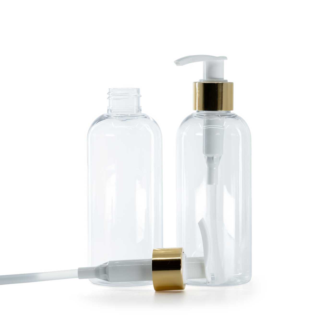 Transparent plastic bottle, ideal for storing a variety of liquids, oils, lotions, etc. It is semi-rigid, but can be squeezed.