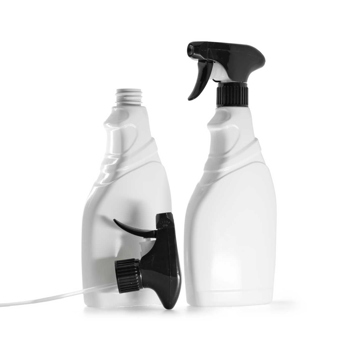 White Detergent Plastic Bottle, Black Trigger Sprayer, 500 ml