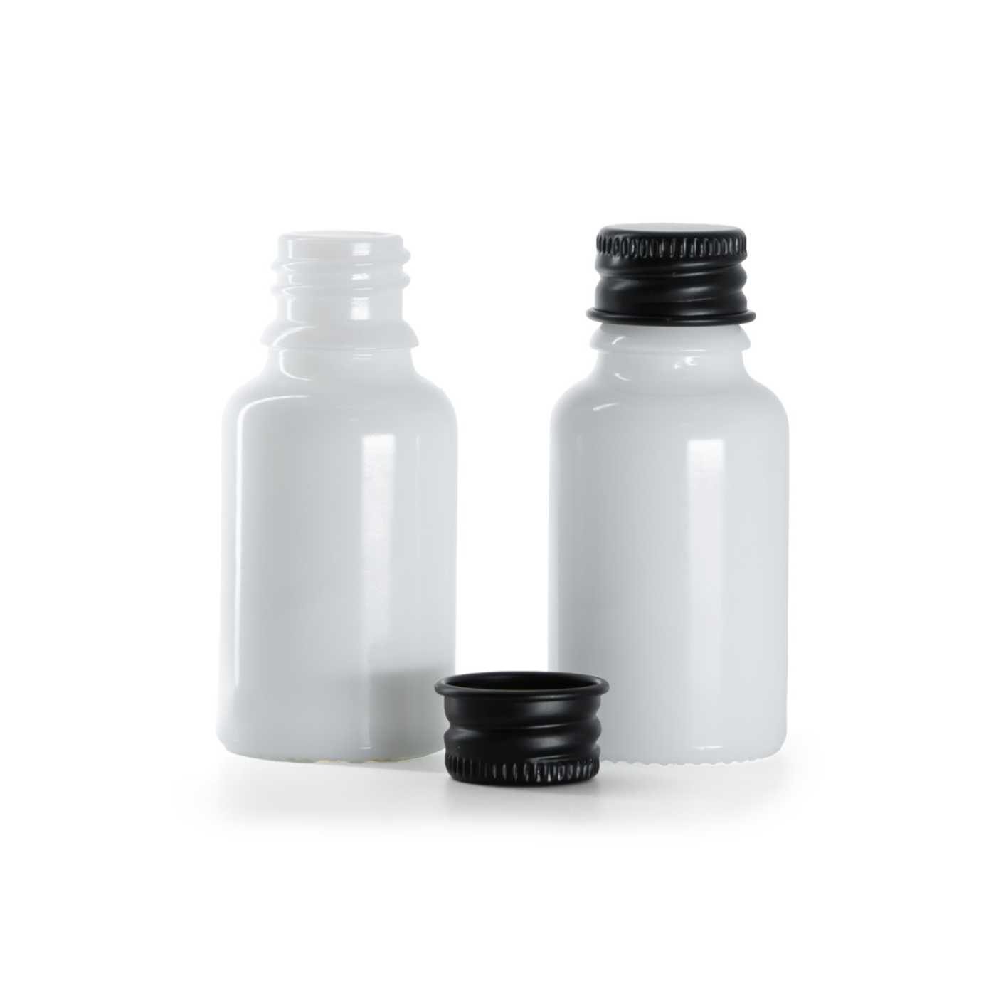 The white glass bottle, the so-called vial, is made of thick glass. It is used for storing liquids.Volume: 15 ml