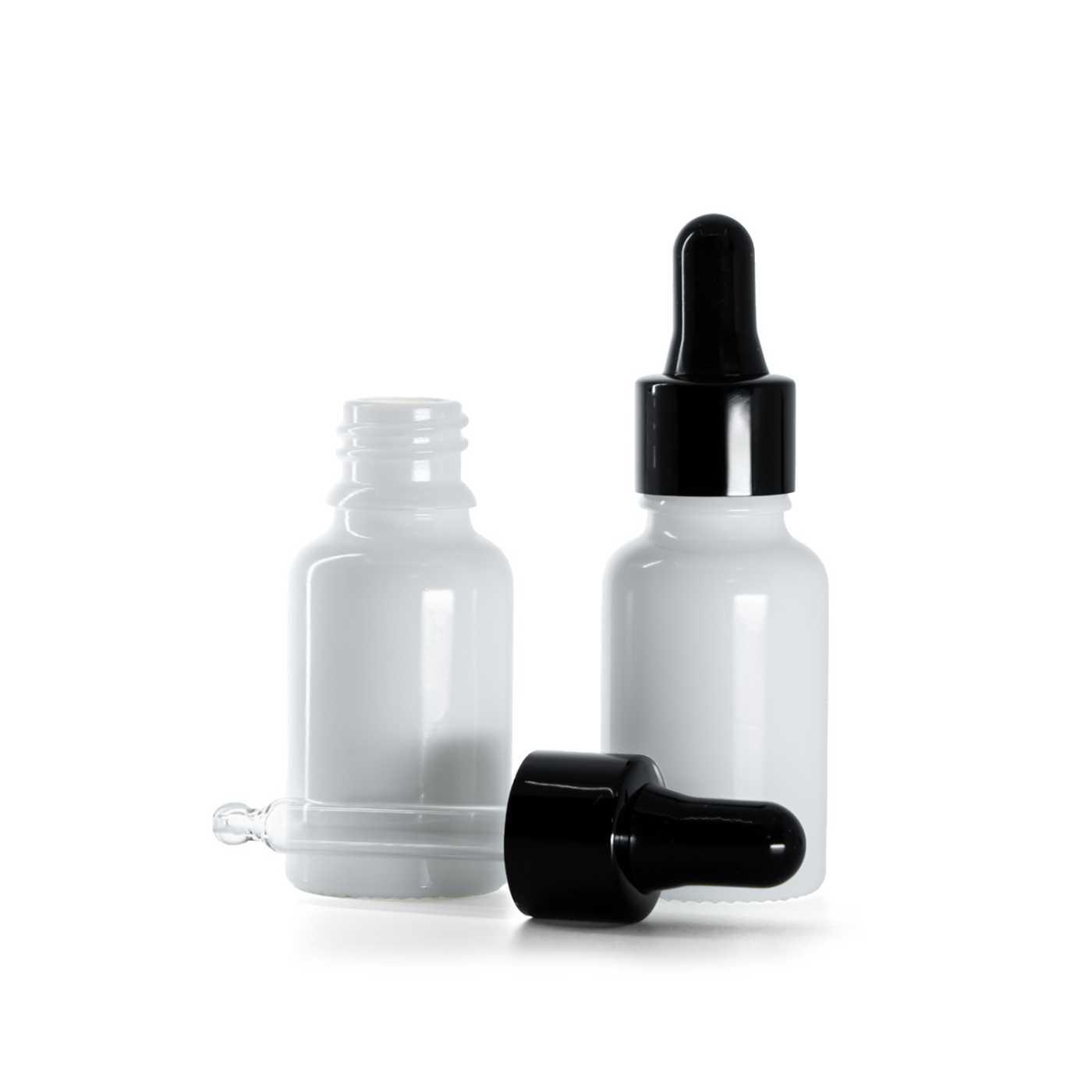 White Glass Bottle, Glossy Black Dropper, 15 ml