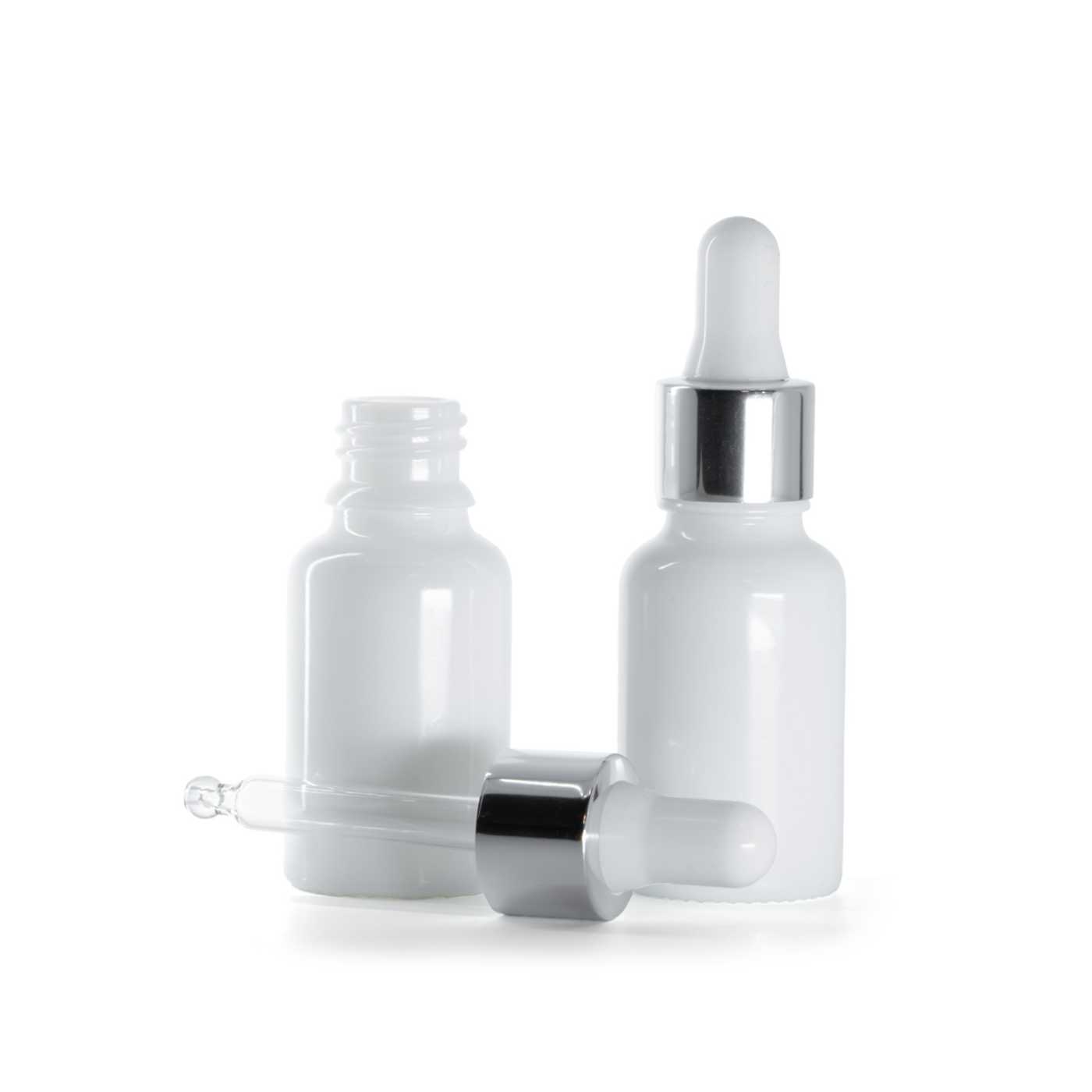 White Glass Bottle, Glossy Silver White Dropper, 15 ml