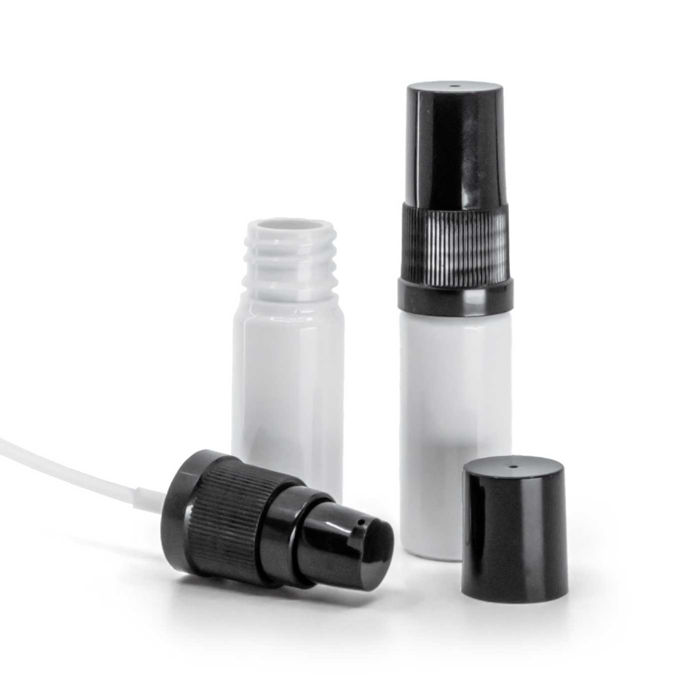 White Plastic Bottle, Black Lotion Pump with Black Overcap, 10 ml