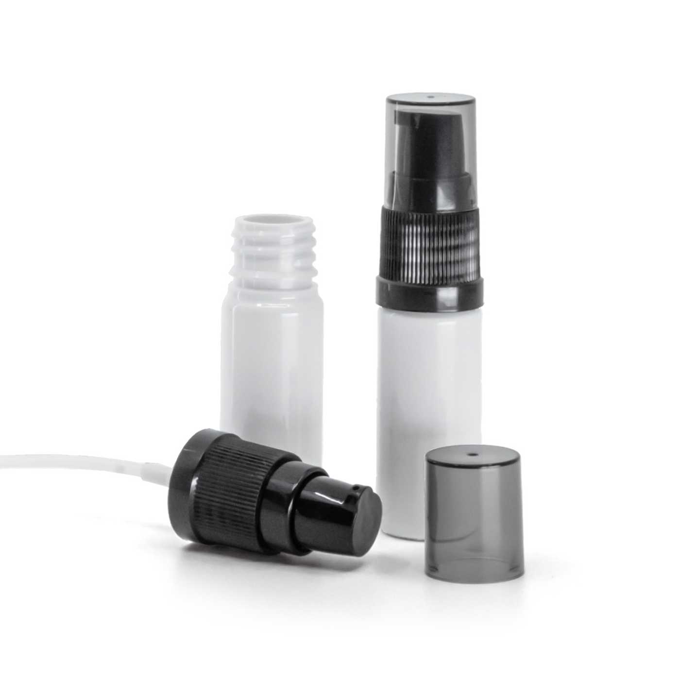 White Plastic Bottle, Black Lotion Pump with Smokey Overcap, 10 ml