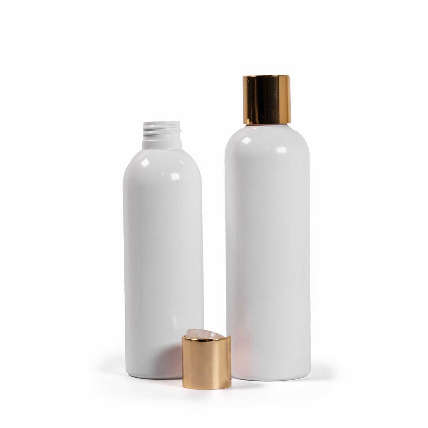 The plastic bottle with a gold flip-top cap represents a practical and aesthetic packaging solution for various liquid and semi-liquid formulations. Thanks to its functional shape and reliable closing, it is suitable for packaging products where convenient dosing, clean application and protection of the contents against contamination are important. The flip-top cap allows quick one-handed opening, which you will appreciate during everyday use in the bathroom, in the salon and in home production.