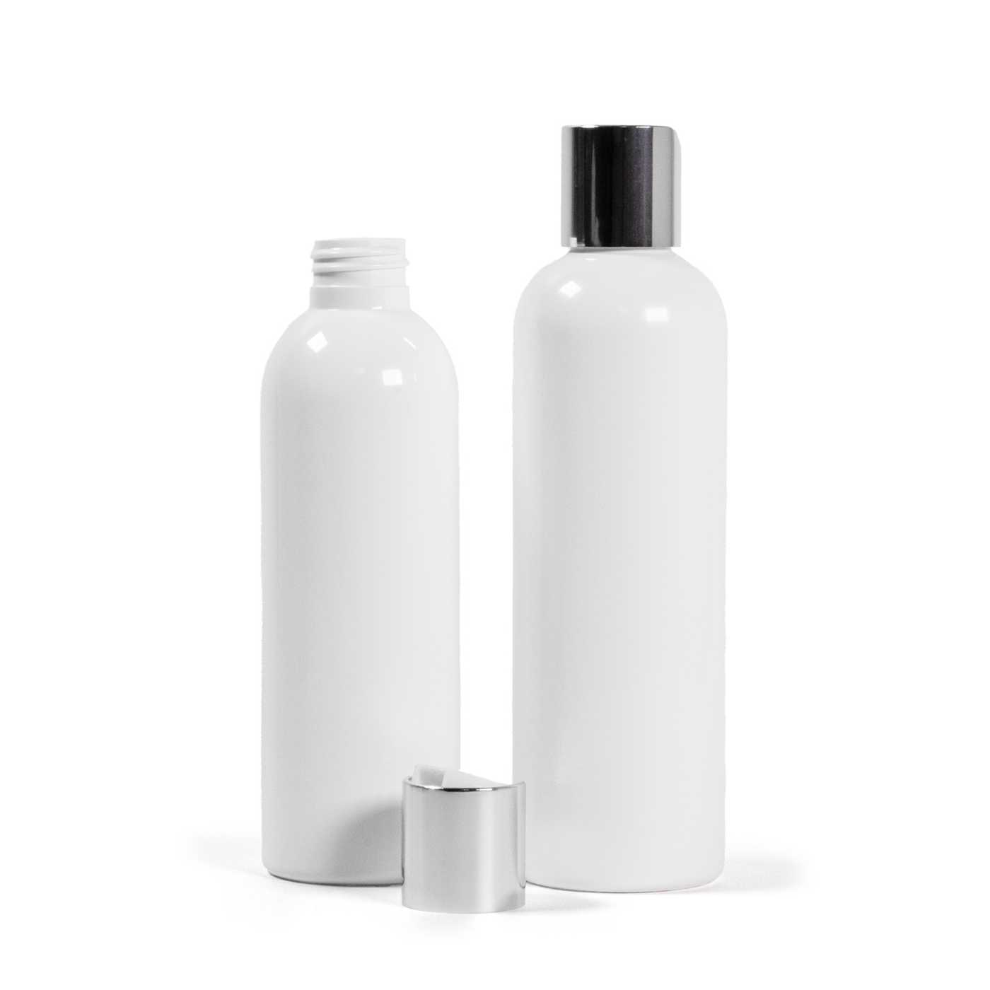 Plastic bottle with silver flip-top closure represents a practical and reliable solution for packaging liquid and gel formulations in cosmetics as well as in home production. The packaging is designed to allow comfortable dispensing of the contents while protecting the product from contamination during normal use.